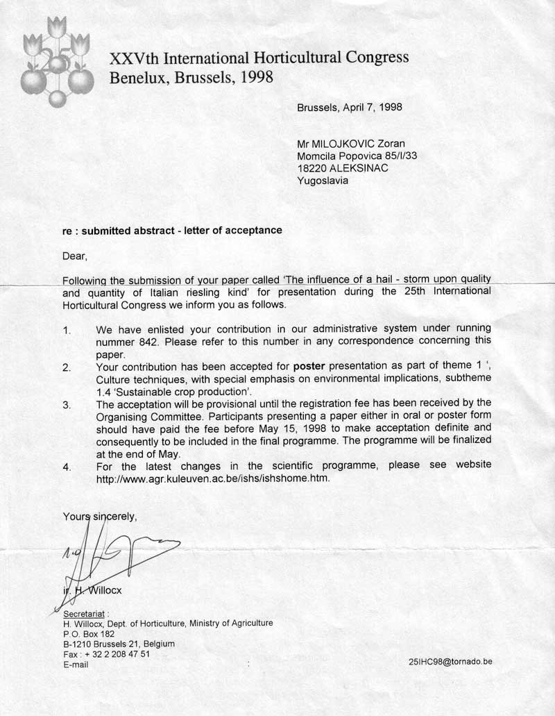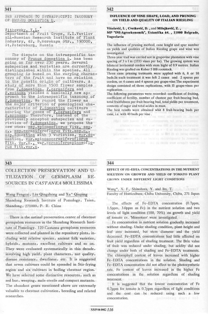 Abstracts - XXVI IHC 1994, Kyoto, Japan